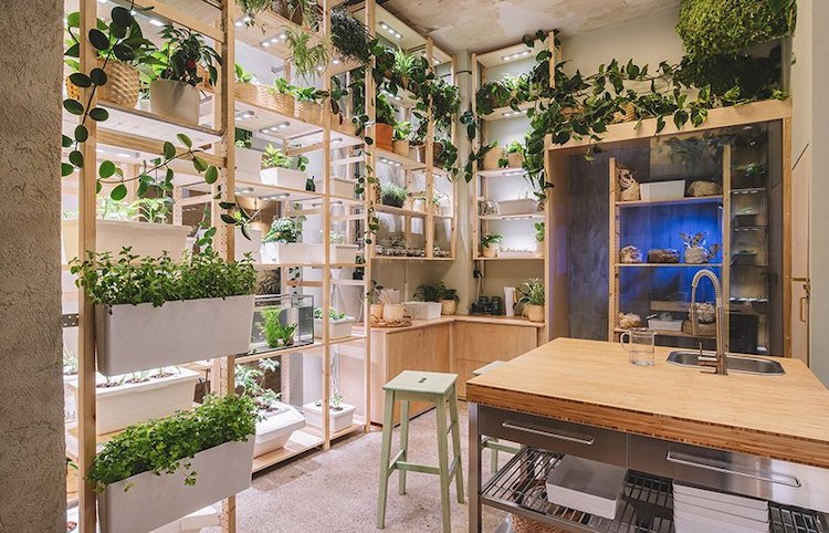 Egy elhagyatott, 120 éves épületben található IKEA otthon úgy lett kialakítva, hogy figyelembe vegye az élelmiszer, a víz, a hulladék és egyéb erőforrások keringését a különböző helyiségek között, egyfajta anyagcserét hozva létre, ahol egyetlen folyamat eredménye egy másik alapjává válik. A rendszer szíve a házikert, amely a hagyományos gazdálkodáshoz képest 90-95%-kal kevesebb vizet használó talajmentes rendszerre épül. Az akvaponika, hidroponika és aeroponika alkalmazása révén lehetőség nyílik paradicsom, paprika, burgonya, káposzta, hüvelyesek, eper, mikrozöldek, fűszernövények és számos ehető gombafaj termesztésére. Más szóval a vegetáriánus táplálkozás teljes skálája megtalálható.